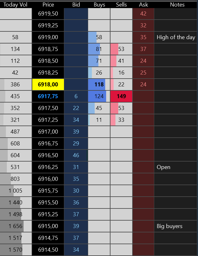 - Precision Notes per Level: Add specific notes or labels to any price level directly on the DOM—perfect for marking institutional levels or target zones.