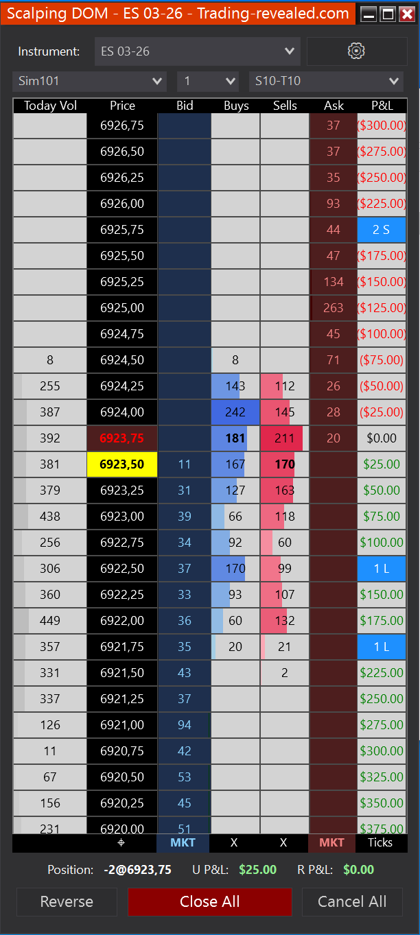 Take your trading to the next level. Built from the ground up to provide a level of fluidity that other NT8 DOMs simply cannot match, the TR Scalping DOM is the ultimate tool for those who want to truly “read” the order book and feel the pressure of buyers and sellers.
